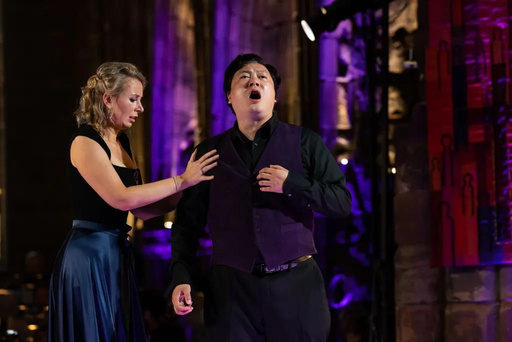 Singing the part of Armand de Clerval in Massenet’s Therese at the Lammermuir Festival. “Shengzhi Ren having a welcome opportunity to show off his powerful but relaxed tenor voice.” Vox Carnyx. Photo by Sally Jubb Photography
